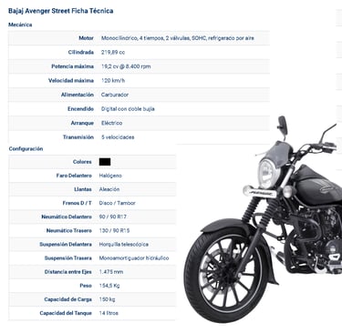 Libera tu espíritu urbano con la Bajaj Avenger 160 Street. Esta no es solo una motocicleta; es la compañera perfecta para quienes buscan estilo, libertad y una actitud inconfundible en cada recorrido. Con un diseño urbano audaz y una postura de conducción relajada, la Avenger 160 Street te ofrece una experiencia cómoda, segura y llena de personalidad. Es la fusión ideal de elegancia, fuerza y la esencia cruiser que no solo te lleva, sino que marca una presencia imponente en cada calle que conquistas.