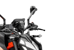 El manillar elevado de alta tecnología de la KTM 390 DUKE permite una posición de pilotaje agresiva, pero controlada.