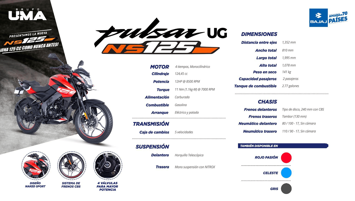 La Pulsar NSUG 125 se presenta como la puerta de entrada definitiva para los entusiastas del segmento de motocicletas deportivas. Su diseño, ahora revitalizado y de marcada presencia, ha sido concebido para la dominación urbana, ofreciendo al piloto una postura de conducción confortable y decididamente deportiva gracias a su estudiado asiento.