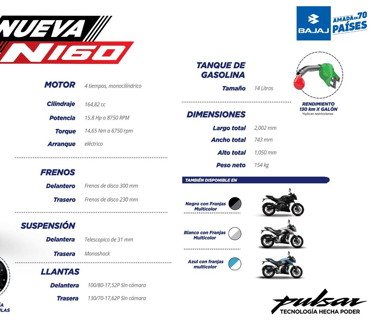 Experimenta el futuro de la conducción deportiva con la nueva PULSAR N160. Conceptualizada para redefinir el segmento, esta motocicleta te ofrece potencia, precisión y un control inigualable como nunca antes lo habías sentido. Su filosofía de diseño único permite satisfacer las exigencias del joven conductor de hoy, que busca una máquina de carácter deportivo audaz que, al mismo tiempo, sea sorprendentemente manejable y ágil en las condiciones cotidianas de la calle. Con la PULSAR N160, cada viaje es una declaración de dominio y emoción.
