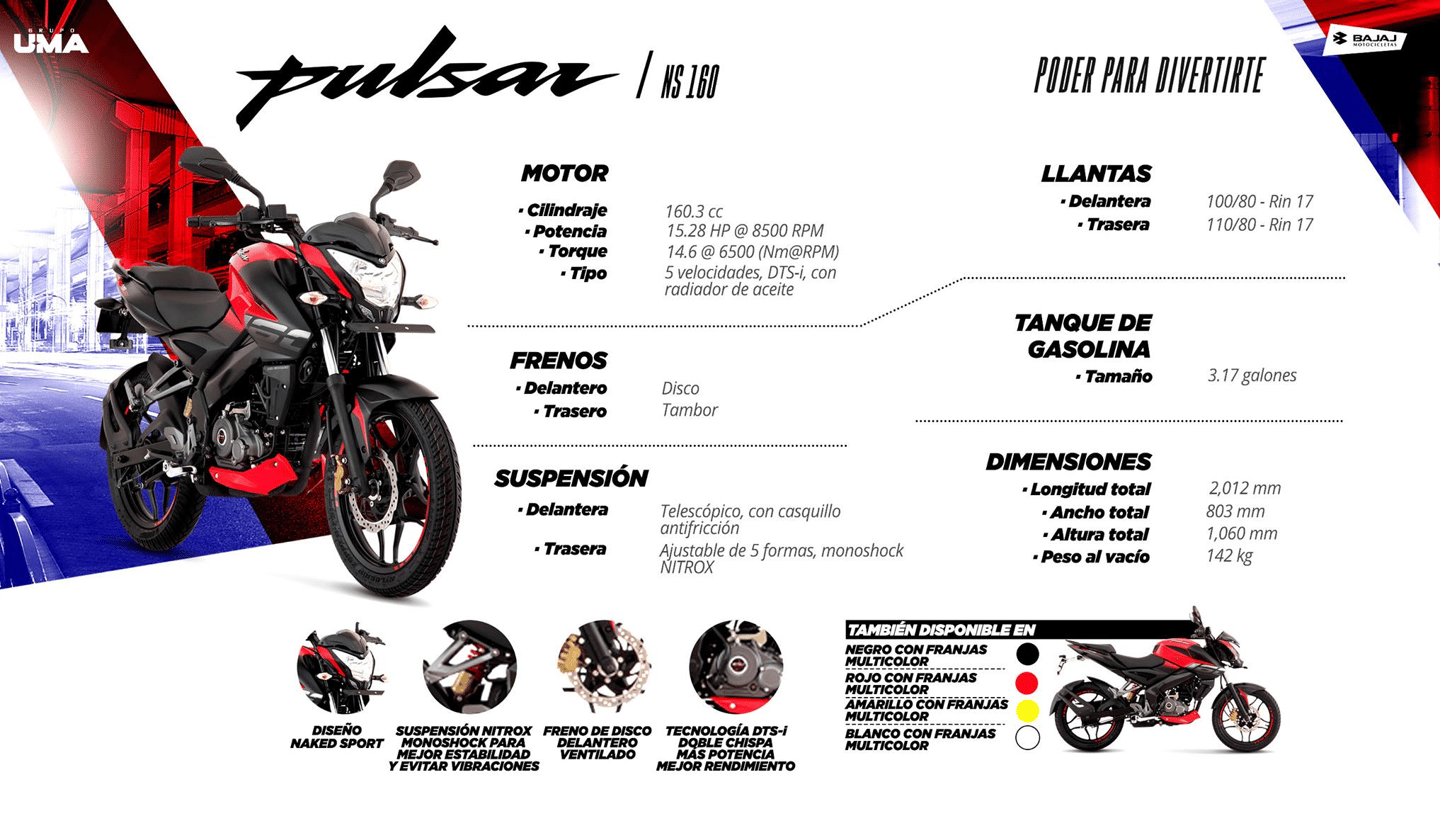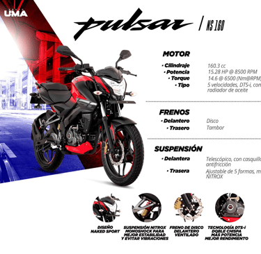 La Bajaj Pulsar NS 160 FI ABS redefine la experiencia de conducción, integrando un diseño majestuoso con tecnología de punta para asegurar una confianza inquebrantable frente a cualquier desafío del camino